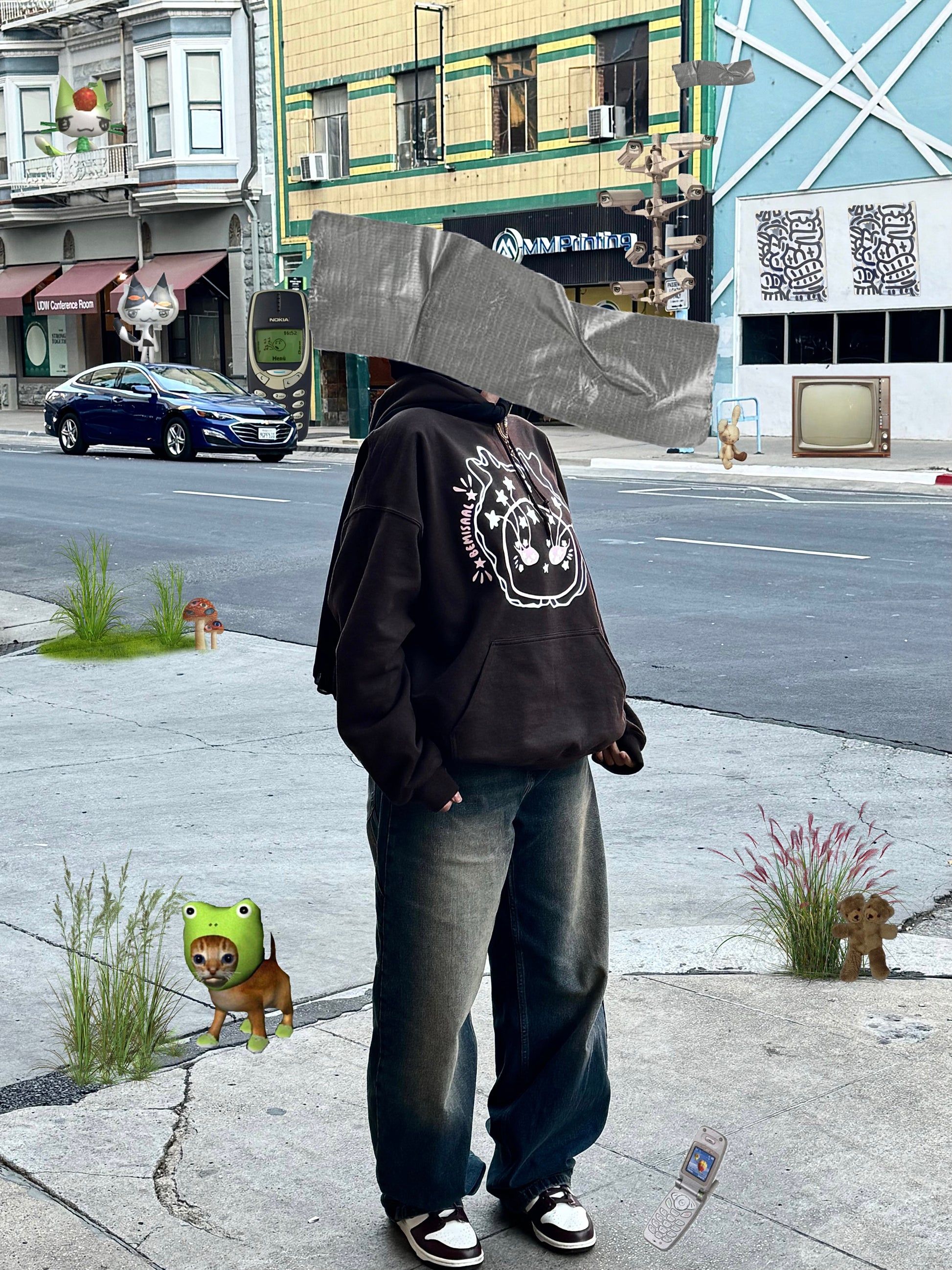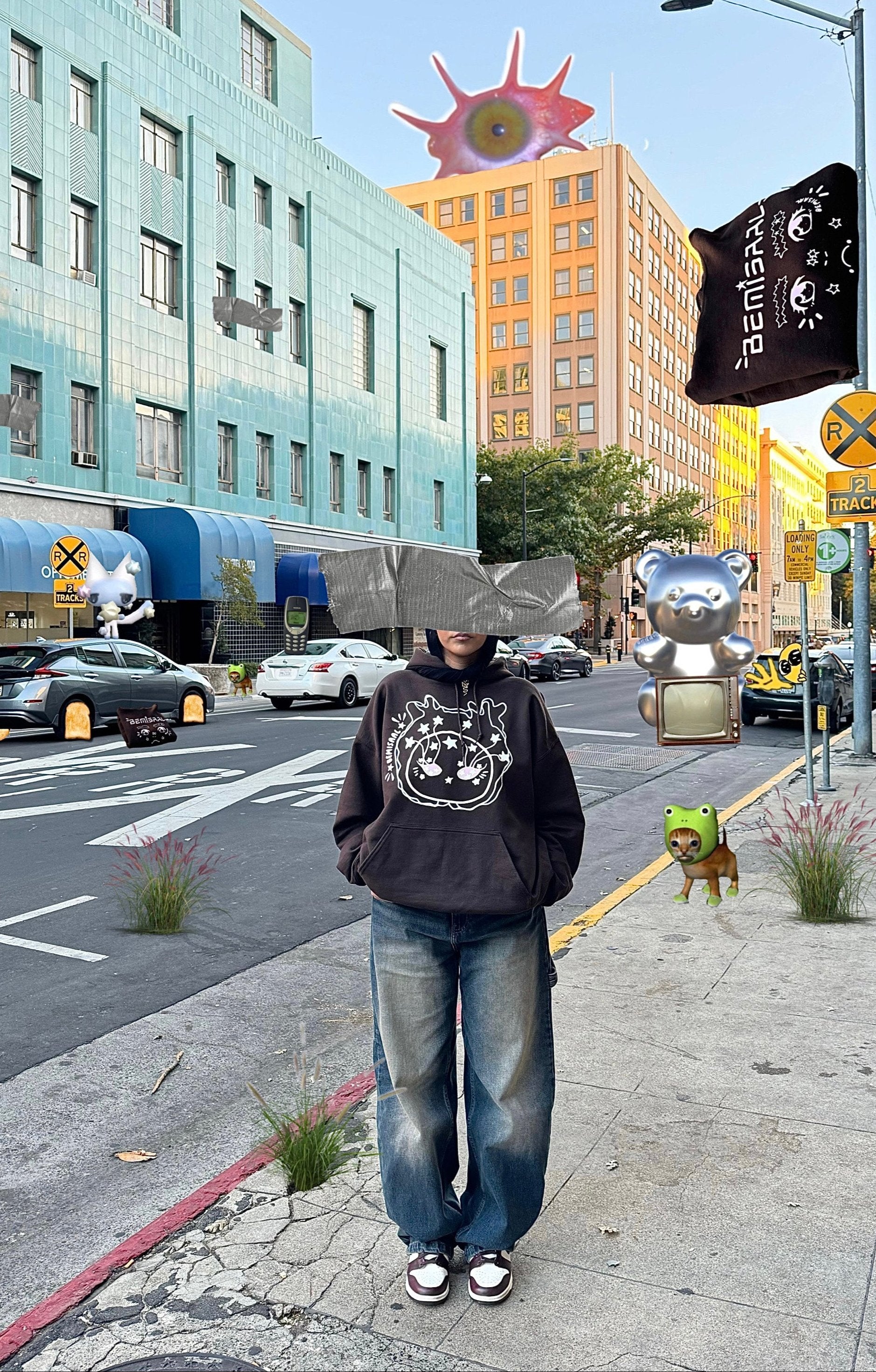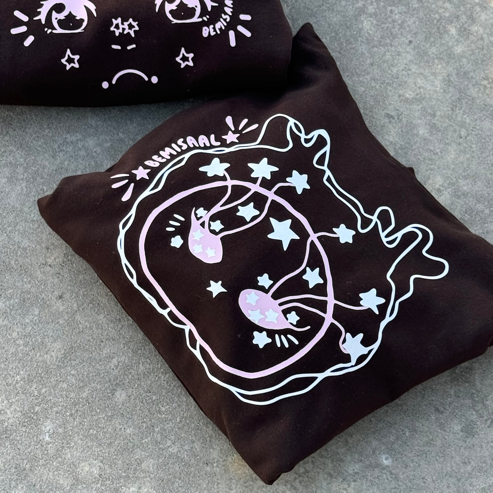 Look up and embrace the world with the Bemisaal oversized hoodie. Crafted from premium, ultra-soft fabric, this streetwear essential combines comfort with striking design. The rich chocolate brown base serves as the perfect canvas for a bold, pink-and-white graphic of a face with stars streaming from its eyes, like plant roots reaching for the sky.